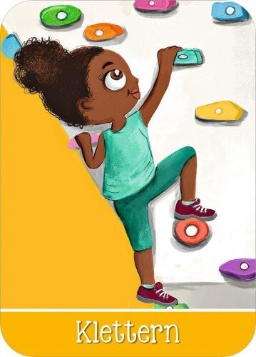 Ohne Worte: In Pantomime für Kinder müssen die Begriffe auf den Karten pantomimisch erklärt werden. Wer stellt die Begriffe am besten dar? Und wer errät die meisten Wörter und gewinnt? Von Berufen über Tiere bis hin zu Freizeitaktivitäten findet sich hier eine kunterbunte Mischung an Begriffen. Die schön illustrierten Karten helfen dabei, sich die richtigen Bewegungen für das jeweilige Wort zu überlegen. Das Spiel ist dank der kindgerechten Begriffe und einer Variante für kleinere Kinder schon im Vorschulalter spielbar und sowohl für kleine als auch für große Gruppen geeignet. Ob für Kindergeburtstage, Spielenachmittage mit der Familie oder für die Klassenfahrt: Spiel-Spaß für Jung und Alt ist hier garantiert!