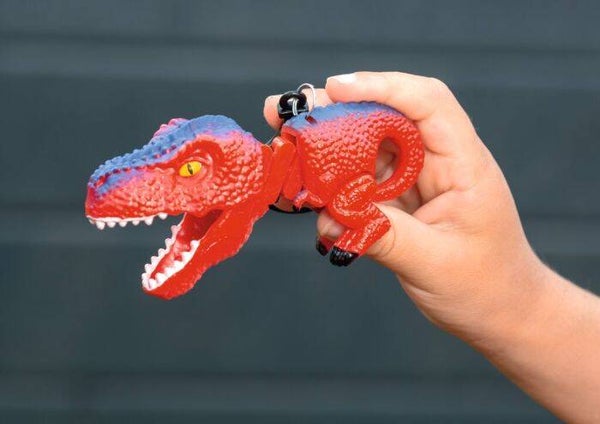 Der schnappt ja zu wie eine echter Dino! Die coolen Dino-Greifer in blau, rot und grau besitzen eine ganz besondere Funktion: Wenn sie an den Beinen gezogen werden, schnappt das Maul zu! Die Dinos sind am praktischen Karabiner befestigt und können problemlos an die Schultasche oder die Hose gehängt werden. So sorgen die realistisch aussehenden Dinos sicher nicht nur in der Schule für Begeisterung, sondern auch auf Kindergeburtstagen.