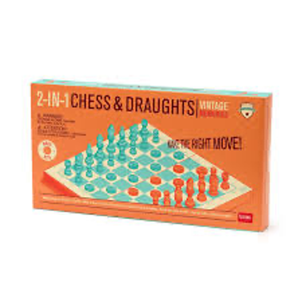 Enthält: 1 faltbares Schachbrett, 16 +16 Schachfiguren, 12 +12 Damespielsteine, Spielregeln