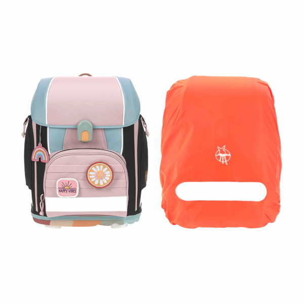 Durch sein schmutz- und wasserabweisendes Material ist er auch bei größeren Abenteuern ein verlässlicher Begleiter. Das Regencover befindet sich im Deckel vom Schulranzen.