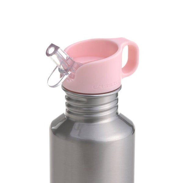 Die Flasche kommt mit zwei verschiedenen Trinkverschlüssen: Der praktische Schraubverschluss mit Edelstahlbügel ermöglicht leichtes Tragen oder Befestigen, der Sportverschluss erleichtert den Kindern das selbstständige Trinken.