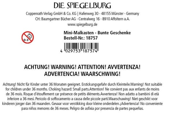 - Warnhinweis: Achtung! Nicht für Kinder unter 36 Monaten geeignet. Erstickungsgefahr durch Kleinteile.