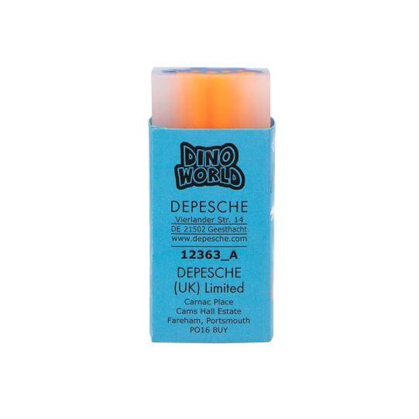 So cool geht Radieren: Die drei Jelly Radierer von Dino World sind außen transparent und haben innen einen niedlichen Dinosaurier (Lila/Grün, Orange/Blau, Blau/Orange). Mit farblich und dinomäßig passend gestalteter Banderole außenrum und in Folie verpackt.