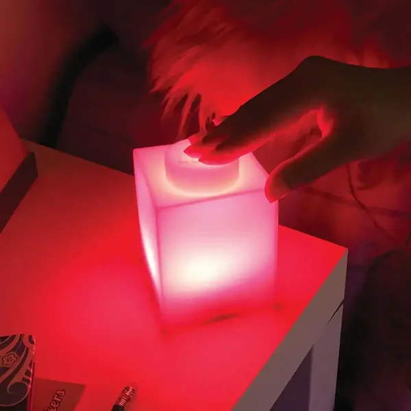 Sorge mit dem LEGO® 1x1 Stein-Nachtlicht für ein beruhigendes Ambiente zum Einschlafen. Tolle Geschenkidee für Kinder ab 6 Jahren. Dieses berührungsempfindliche, sanft leuchtende Nachtlicht mit (in unterschiedlichen Farben erhältlichem) Silikongehäuse besitzt die Form eines klassischen LEGO 1x1 Steins. Wähle eine von 8 Farboptionen oder aktiviere den automatischen Wechsel zwischen den 8 Lichtfarben. Das Licht leuchtet 15 Minuten, bevor es sich automatisch abschaltet. Das ist die perfekte Einschlafhilfe, um LEGO Fans sanft einschlummern und von großen LEGO Modellen träumen zu lassen.