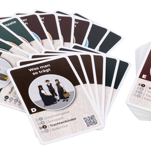 Unser Quartett besteht aus 12 Sets zu je vier Karten. Jedes Sets enthält Motive zu einem Thema des Schwarzwaldes wie etwa besondere Bauwerke oder herausragende Naturschauspiele. Die Karten sind liebevoll und künstlerisch ansprechend gestaltet. Über einen aufgedruckten QR-Code kannst Du auf unser großes Schwarzwaldlexikon zugreifen und erhältst umfangreiches Hintergrundwissen zu den jeweiligen Motiven. Das Quartett ist in Deutschland hergestellt. Spielfreunde mit Lerneffekt für alle Altersklassen! Marke : DEINDESIGNWERK Artikel-Nr :10102002 Motiv : 48 einzigartige Schwarzwaldmotive Besonderheiten : 12 Sets á 4 KartenSchwarzwaldlexikon inklusive mit Lerneffekt Material : Karton Tiefe 2 cm ACHTUNG: Nicht für Kinder unter 3 Jahren geeignet. Kleine Teile. Erstickungsgefahr. Dieses Spielzeug entspricht den europäischen und amerikanischen Sicherheitsvorschriften EN 71 und ASTM F 963.