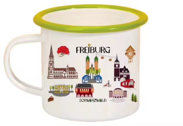 Freiburg/Schwarzwald Emaille Tasse (Rand hell grün)