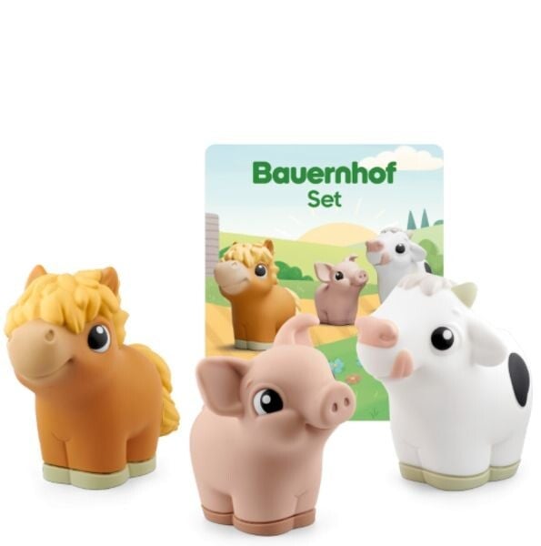 Drüüücken, lauschen und lernen mit My First Tonies! Entdecke die Welt der Bauernhoftiere! Welches Geräusch macht die Kuh? Und wie macht das Schwein? Und wie macht das Pferd? Lerne deine ersten Bauernhof-Tiere spielerisch kennen. In kurzen, altersgerecht erzählten Geschichten erfahren die Allerkleinsten alles über ihre ersten Bauernhof-Tiere, üben ihr Hörverstehen und ihre Sprachfähigkeiten und lernen ganz nebenbei neue Wörter. Ein Klangteppich mit echten Tiergeräuschen und Musik begleitet die kleinen Bauernhof-Fans beim offenen Spiel. Auf jedem Tonie lädt ein original tonies Tierlied mit eingängigen Melodien zum Mitsingen und Mitmachen ein. Gelesen und gesungen von Kindern und Erwachsenen! Mit echten Tiergeräuschen!