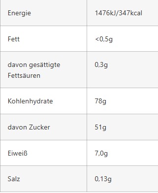 Überzugsmittel: Bienenwachs weiss und gelb, Carnaubawachs: Fruchtsüsse aus Johannisbrotfrucht, Invertzuckersirup