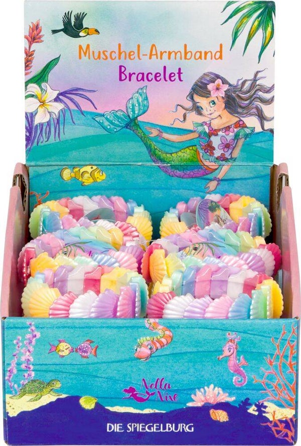 Das Muschel-Armband – Nella Nixe von Die Spiegelburg funkelt in pastelligen Regenbogenfarbenund erinnert an die Schätze der Meereswelt. Die Muschelelemente sind auf einem elastischen Bandaufgefädelt, sodass sich das Armband angenehm tragen lässt (Ø ca. 6 cm). Ein fröhliches Accessoire, das Sommerlaune verbreitet und kleine Nixen träumen lässt.