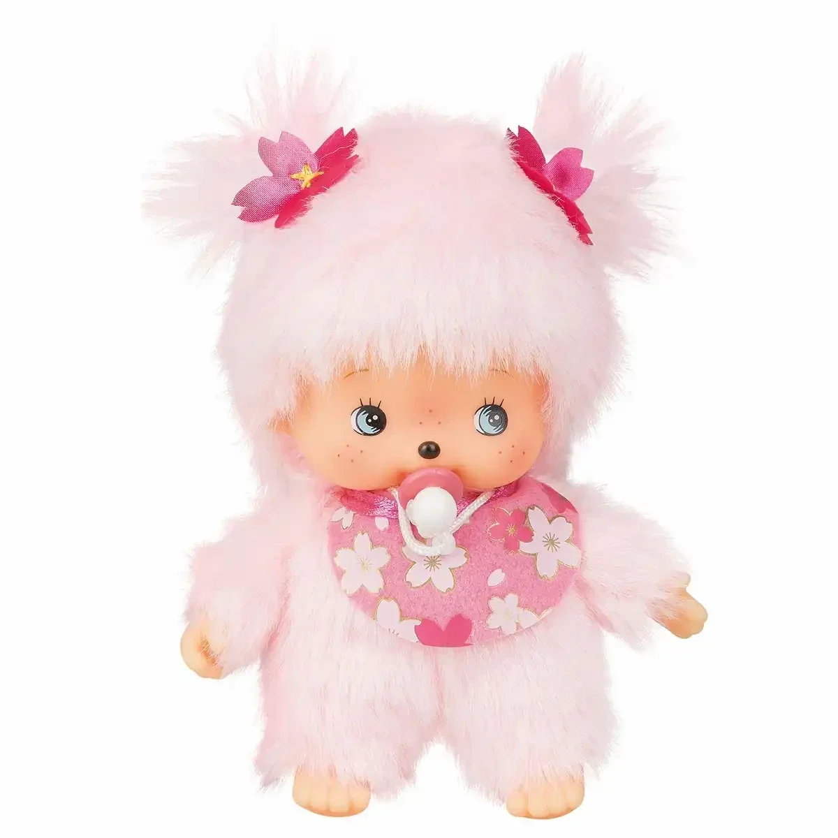 Dieser süße Bebichhichi aus rosa Plüschfell trägt ein Lätzchen mit Kirschblütenmuster und zwei Blumen im Haar. Das zauberhafte Puppen-Mädchen ist etwa 15 cm groß und ein tolles Geschenk für Jung und Alt.