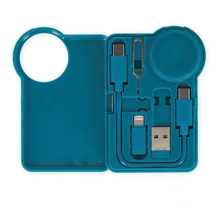 Um die Welt zu bereisen, braucht man universelle Ausrüstung! Deshalb darf das Reiseadapter-Set mit Kabel - Travel Kit with Cable and Adapters von Legami nicht fehlen: ein echter technologischer Reisepass, der die Sprache all deiner Geräte spricht. Lädt Akkus, synchronisiert Daten, bewahrt Karten auf - und lässt dich nie im Stich.